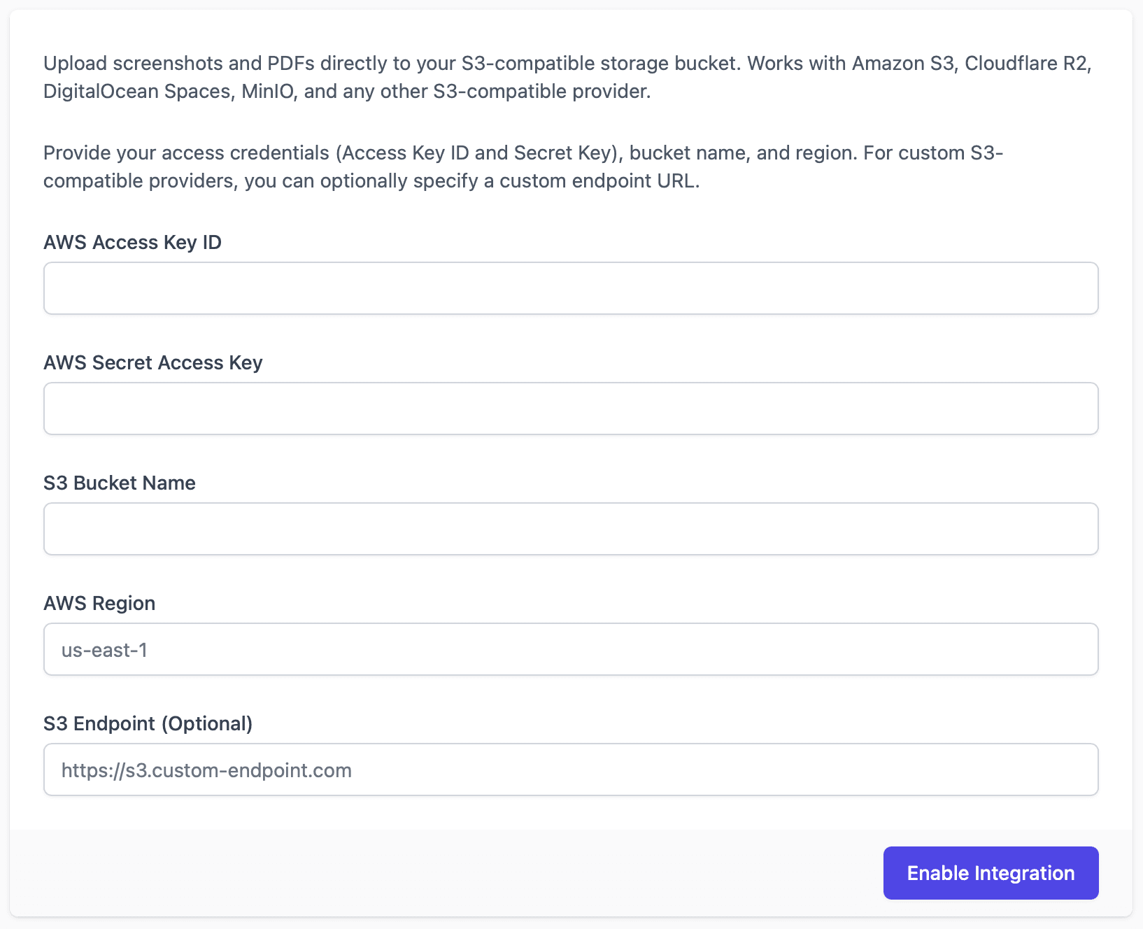 markdown field in the Content API response.We've added support for all S3-compatible storage solutions! You can now specify a custom endpoint and region for your S3 integration. This means you can use Amazon S3, Cloudflare R2, DigitalOcean Spaces, MinIO, or any other S3-compatible provider — all with seamless integration and the same reliability you expect from our product.